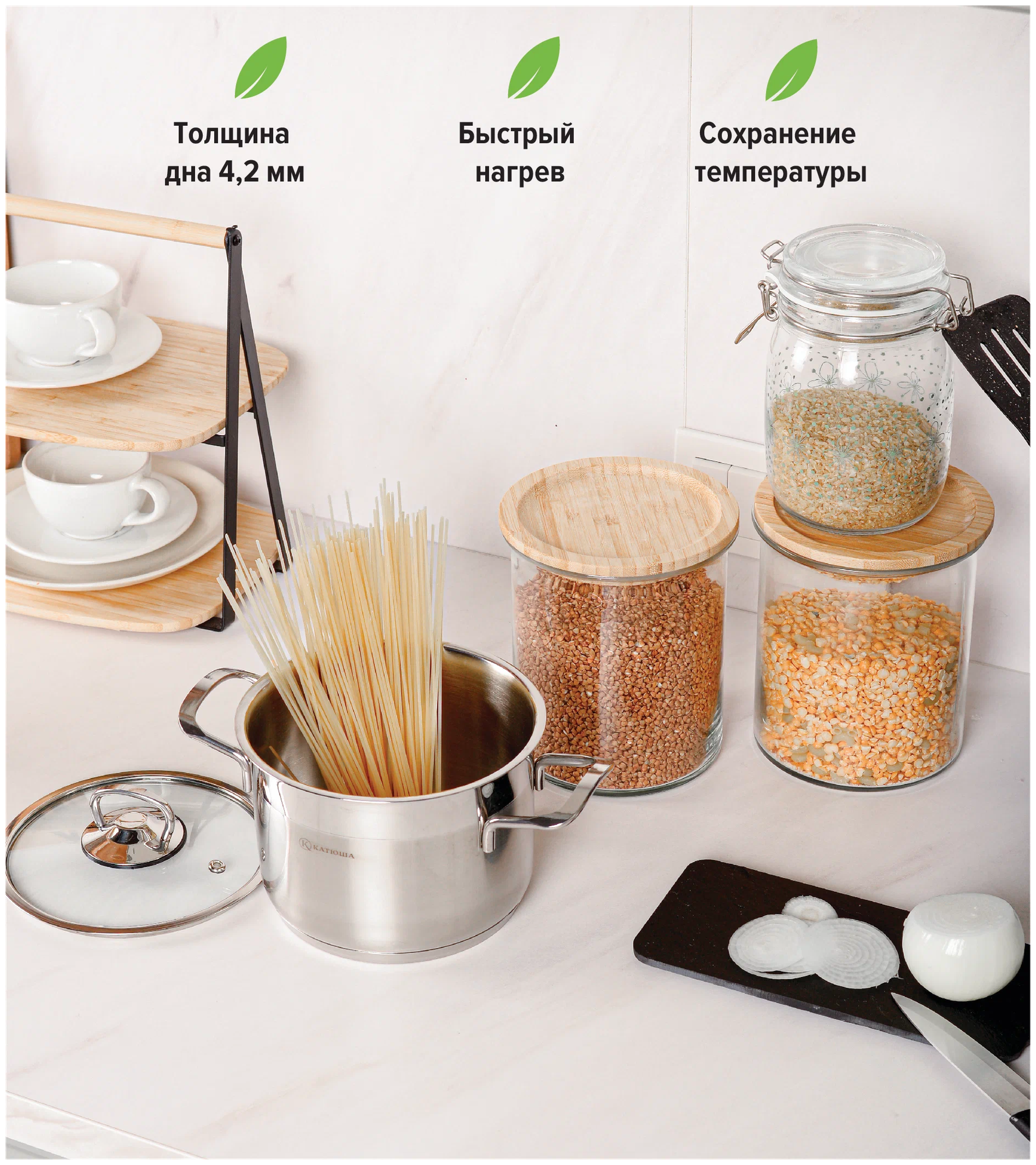 Кастрюля Катюша София, нержавеющая сталь, со стеклянной крышкой, 2,1 л, 16 см