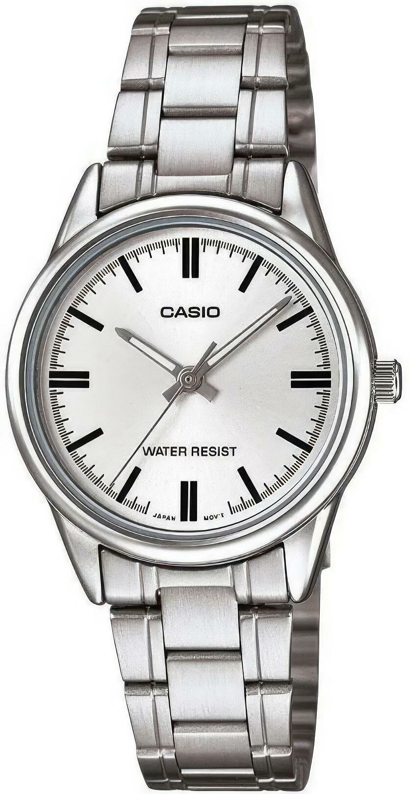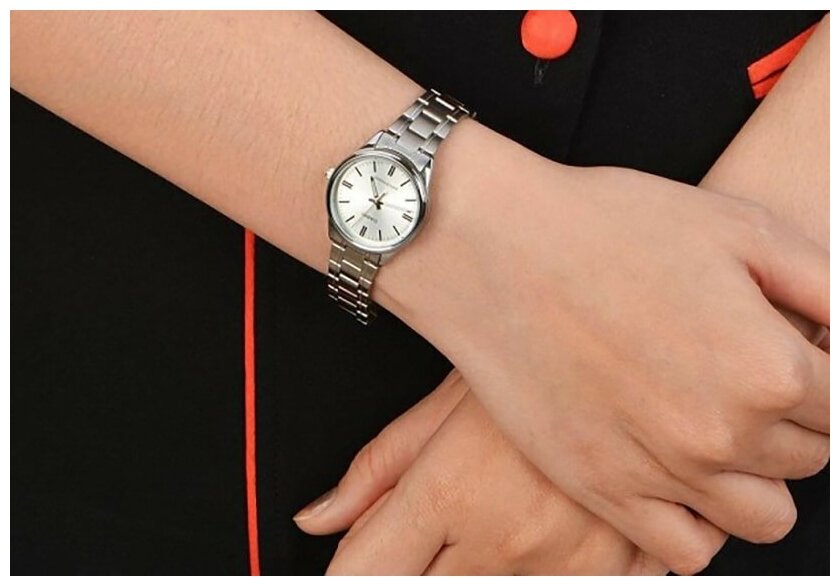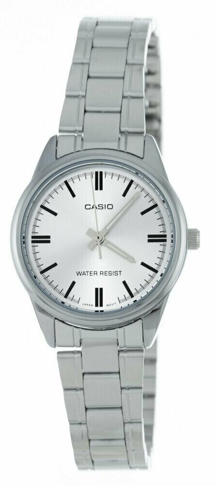 Лучшие цены. Центральная секундная стрелка. Точный кварцевый механизм Женские наручные часы Casio LTP-V005D-7A кварцевые, элементом питания которых является батарейка. Корпус стальной с черным и серебристым циферблатом и минеральным стеклом, которое не расколется от легкого удара, браслет стальной. Модель Casio LTP-V005D-7A обладает степенью влагостойкости 50 м (5 АТМ), в этом случае разрешено кратковременное погружение в воду, для плавания рассмотрите модели от 100 м (10 АТМ). Магазины в вашем городе.