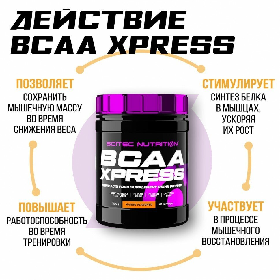 BCAA Xpress / Аминокислоты / Амино / порошок со вкусом манго / 280 гр.