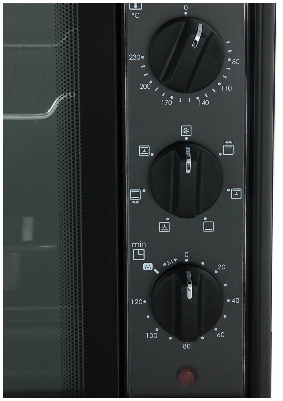 Лучшие цены. Основные характеристики - Мощность: 1550 Вт - Внутренний объем: 30 л - Внутреннее покрытие: антипригарное - Количество нагревательных элементов: 2 - Цвет: чёрный - Цвет фурнитуры: черный Управление - Тип управления: механическое - Переключатели: поворотные - Таймер: механический - Звуковой таймер: да Режимы работы - Количество режимов работы: 7 - Режимы работы: размораживание, верхний жар с вертелом, верхний жар с конвекцией, нижний жар, нижний жар с конвекцией, верхний/нижний жар с вертелом, верхний/нижний. Магазины в вашем городе.