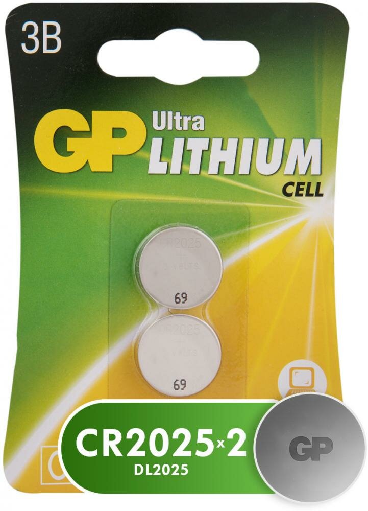 Аккумуляторы и батарейки GP Lithium Cell CR2025, дисковые, 2 шт. в упаковке