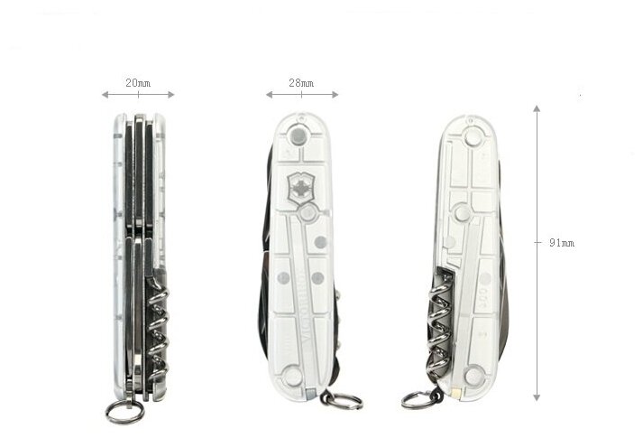 Лучшие цены. Швейцарский армейский нож CLIMBER имеет 14 функций: 1. Большое лезвие 2. Малое лезвие 3. Штопор 4. Консервный нож с: 5. – Малой отвёрткой 6. Открывалка для бутылок с: 7. – Отвёрткой 8. – Инструментом для снятия изоляции 9. Шило, кернер 10. Кольцо для ключей 11. Пинцет 12. Зубочистка 13. Ножницы 14. Многофункциональный крючок Цвет рукояти: полупрозрачный серебристый Рекомендуемые чехлы: 4.0480.1, 4.0480.3, 4.0520.1, 4.0520.3, 4.0520.31, 4.0520.32, 4.0543.3, 4.0533 Рекомендуемые аксессуары: Инструмент для. Магазины в вашем городе.