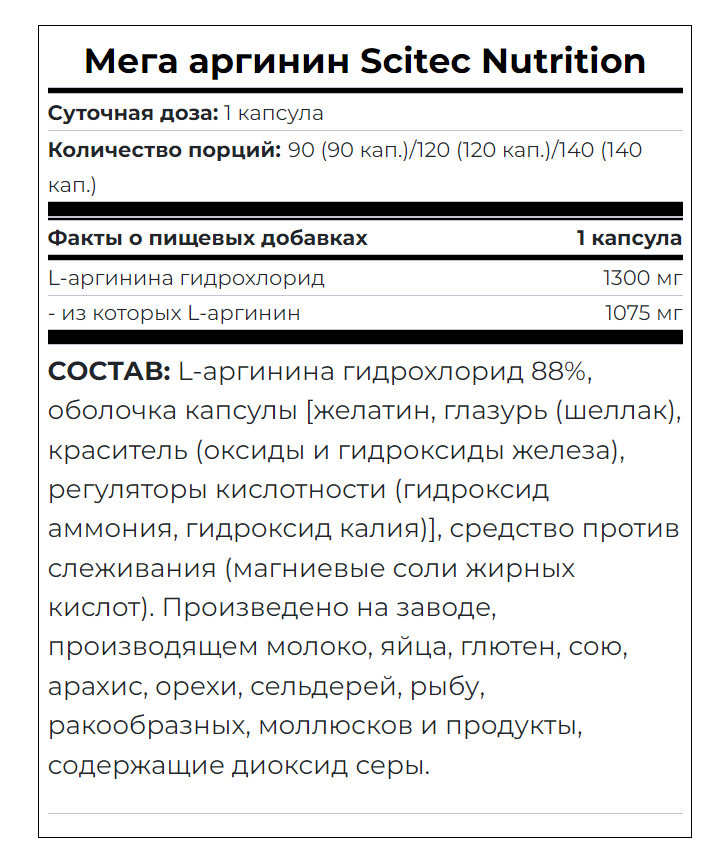 Scitec Nutrition Mega Arginine 1300 mg (Мега Аргинин 1300 мг в капсуле) 120 капсул (Scitec Nutrition)