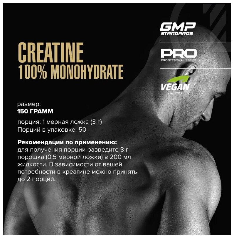 Лучшие цены. Creatine Monohydrate — это 100% креатин моногидрат в порошковой форме. Моногидрат креатина характеризуется максимальным содержанием действующего вещества, является самой распространённой формой креатина. Порошок не имеет вкуса, обладает стабильностью при хранении. Креатин способствует накоплению воды внутри мышечных волокон, повышению синтеза белка в организме и увеличению мускулатуры за счёт большего показателя силы. Чем больше объём работы, тем больше прибавка массы. Магазины в вашем городе.