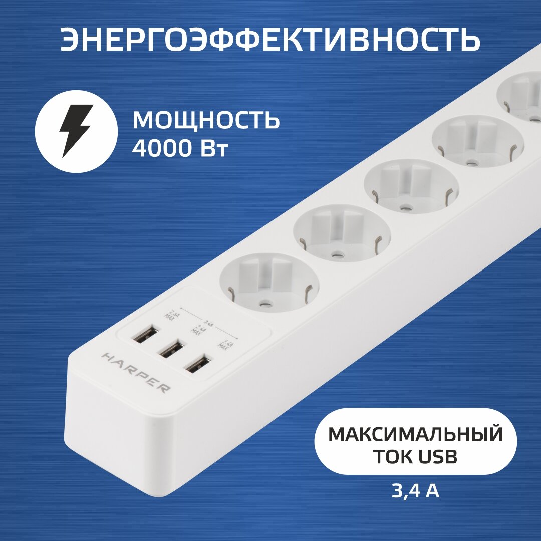 Сетевой фильтр с USB зарядкой HARPER UCH-530 белый 2 696 ₽ Подробнее