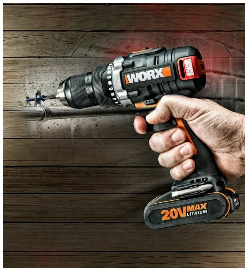 Дрель-шуруповерт аккумуляторная WORX BL WX175 20В с АКБ 2,0 А.ч (2 шт.) и ЗУ в кейсе