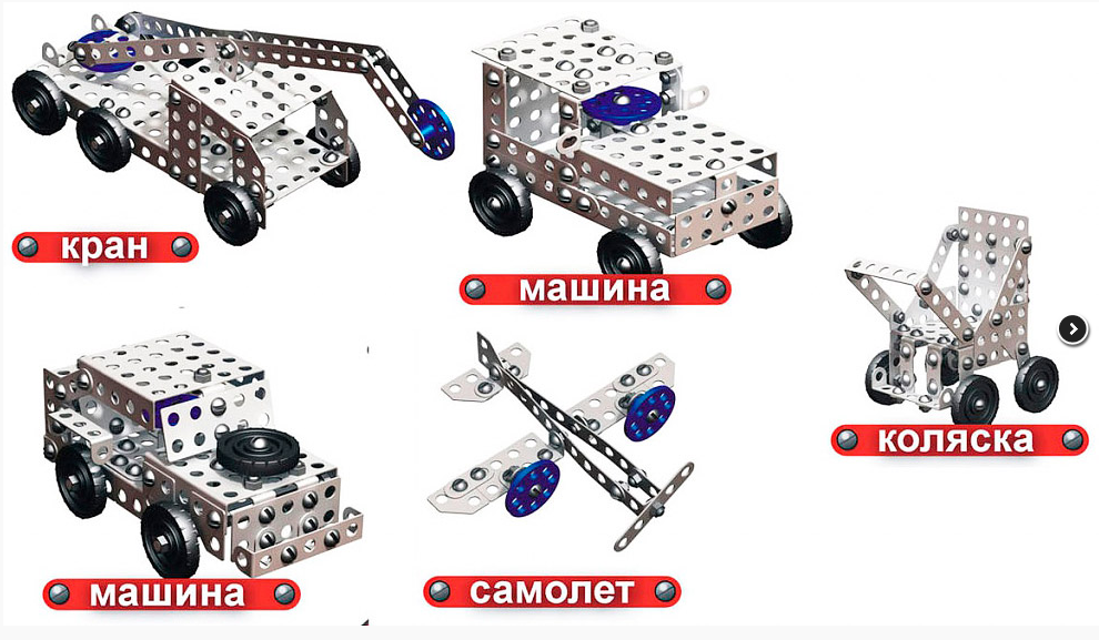 Лучшие цены. Металлический конструктор "Для уроков труда" набор No3 привлечет внимание вашего ребенка и познакомит его с основами конструирования. С помощью элементов конструктора ребенок сможет своими руками собрать для себя игрушку.В инструкции приведены 5 моделей для сборки: машина, джип, самолет, коляска и кран. В комплекте 332 элемента , в том числе отвертка и гаечный ключ. Конструктор раскрывает перед ребенком неограниченные возможности моделирования и создания множества своих собственных моделей. Магазины в вашем городе.