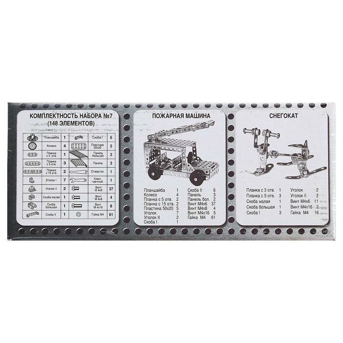 Лучшие цены. Методы воспитания и образования будут меняться бесконечно, но во все времена постоянным остаётся одно ― радость ребёнка от подаренной ему игрушки. Как известно, счастливая улыбка крохи ― самая большая награда для родителей. Конструктор металлический №7 для уроков труда, 148 деталей — отличный подарок вашему малышу. Магазины в вашем городе.