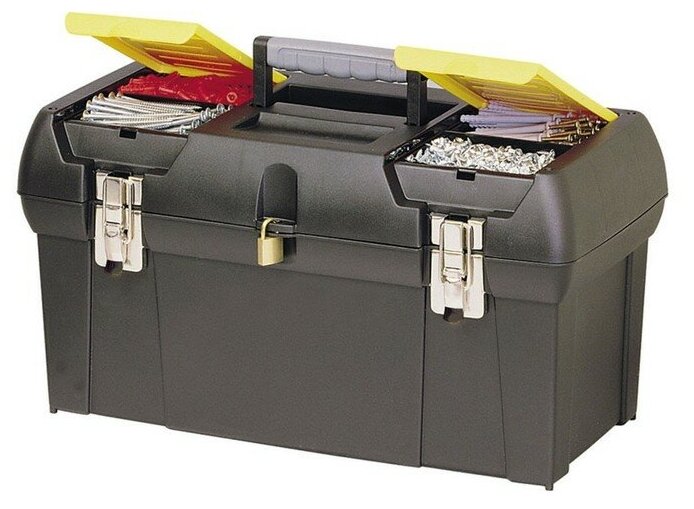 Лучшие цены. Ящик для инструментов Stanley 1-92-066, 19", 2 встроенных органайзера, пластик, метал. замок 288286. Ищете качественный инструмент! Поздравляем, нашли! Стройте грандиозные планы, реализуйте свои идеи и не бойтесь знакомиться с новыми материалами и техниками. У вас всё получится, ведь у нас вы найдете инструмент как для бытового использования, так и для профессиональной деятельности. Может быть, Ящик для инструментов Stanley 1-92-066, 19", 2 встроенных органайзера, пластик, метал. Магазины в вашем городе.