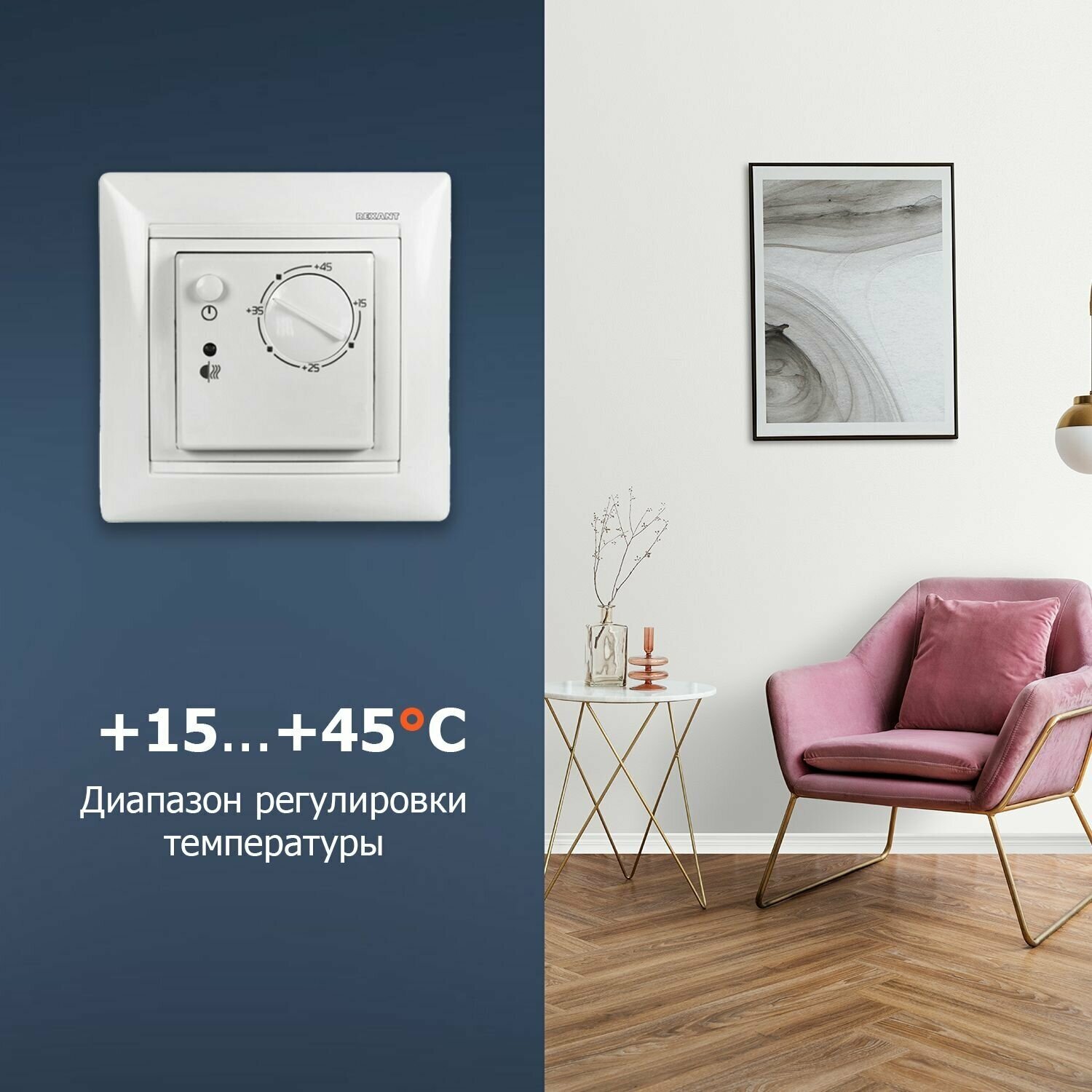 Терморегулятор Rexant RX-308 51-0562 белый, совместим с Legrand серии Valena