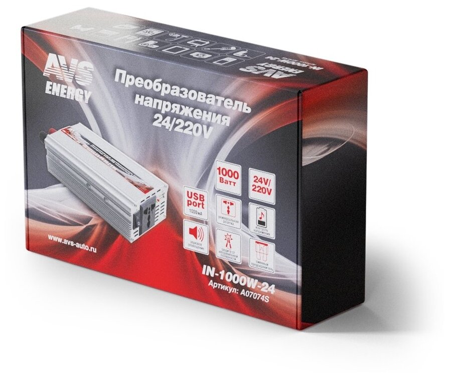 Автомобильный инвертор Инвертор автомобильный 24/220V AVS IN-1000W-24
