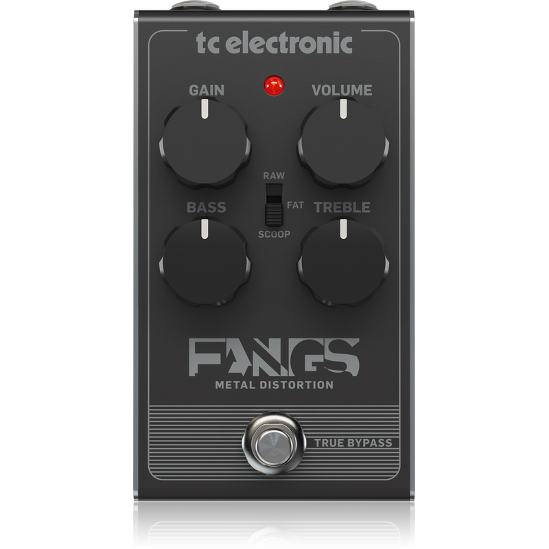 Лучшие цены. Гитарная педаль эффекта дисторшн TC ELECTRONIC FANGS METAL DISTORTION - это выбор тех, кто любит звук потяжелее, например, ультрабрутальный треш-метал, дум-метал. На выходе получается мощный, плотный, густой звук с возможностью гибкой регулировки частот. Модель оснащена четырьмя регуляторами: Gain (уровень перегруза), Volume (уровень выходного сигнала), Bass (низкие частоты), Treble (высокие частоты). Также присутствует дополнительный переключатель Raw/Fat/Scoop, настраивающий средние частоты. Магазины в вашем городе.