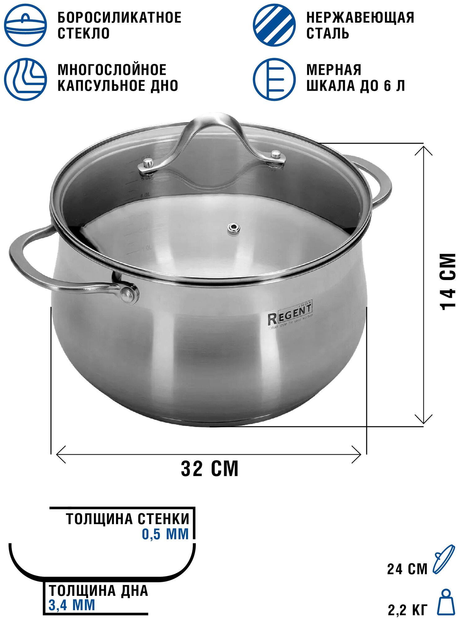| Дополнительно | совместимость с индукцией, мытье в посудомойке, отверстие для пара, многослойное дно, шкала литража |