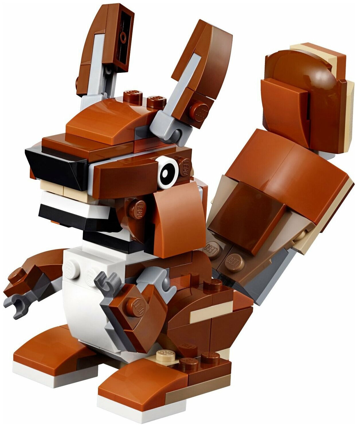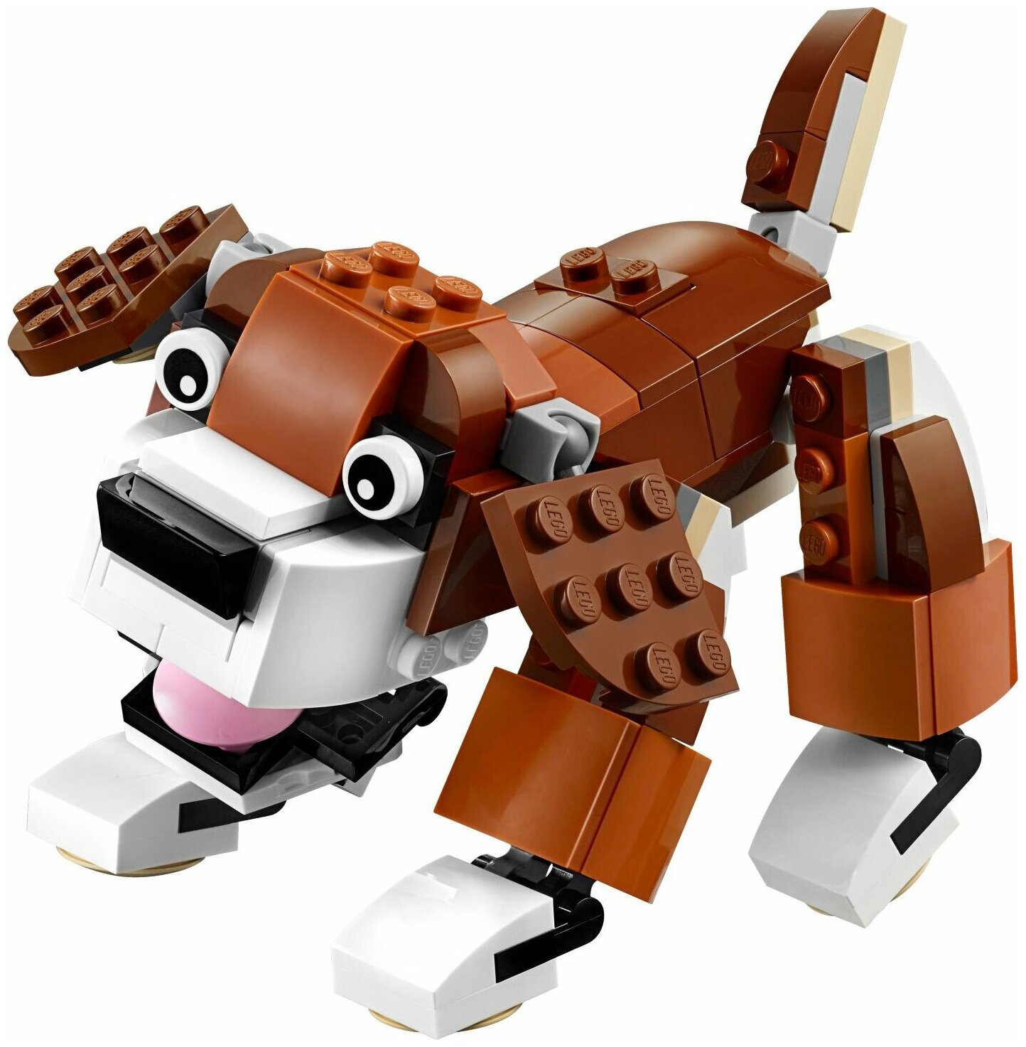 Лучшие цены. У милой коричневой собачки крутится голова, открывается рот и уши вертятся в разные стороны. Она довольно объемная и с ней очень здорово и приятно играть. Так же в комплекте Лего Криэйтор "Животные в парке" Вы найдете хорошенькую уточку с утятами. Из деталей этого конструктора можно создать не только щенка с уткой, но и сову. Мудрая птица крутит головой и может махать крыльями. А перестроив детальки еще раз, Вы сконструируете забавную белочку с большим хвостиком. Магазины в вашем городе.