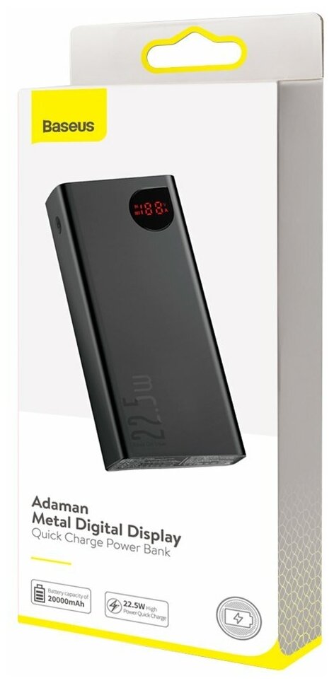 Портативный аккумулятор Baseus Adaman Metal Digital Display Quick Charge, 20000mAh, черный, упаковка: коробка