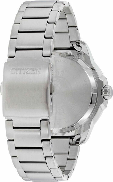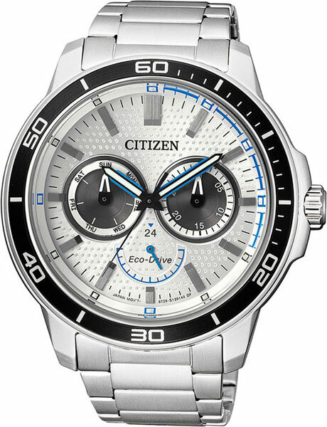 Лучшие цены. Мужские кварцевые часы с приводом Eco-Drive. Заряжаются от любого источника освещения. Запас энергии до 180 дней. Функция индикации заряда (EOL). Центральные часовая, минутная и секундная стрелки. На отдельные малые циферблаты вынесен календарь: число, день недели. Круглый корпус выполнен из нержавеющей стали. Диаметр корпуса составляет 46 мм. Браслет из нержавеющей стали, раскладывающаяся застежка. Минеральное ударопрочное стекло, устойчивое к мелким механическим повреждениям. Магазины в вашем городе.