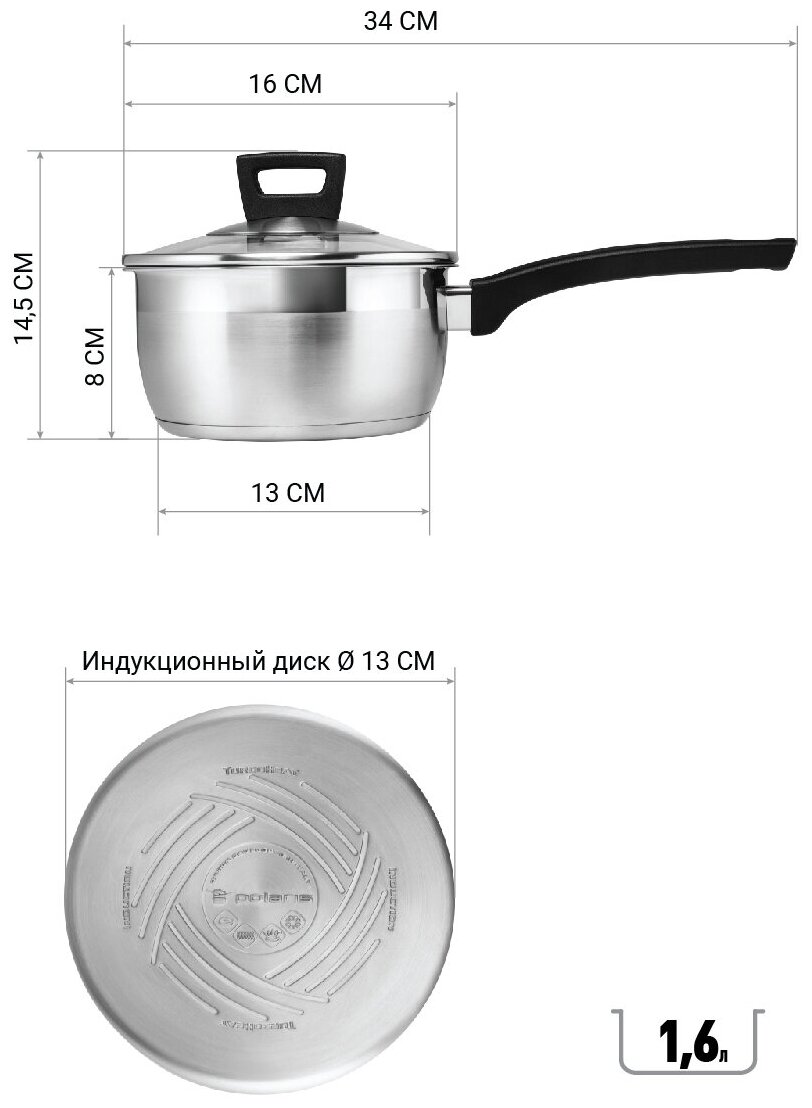 Кастрюля Ковш Polaris Rialto-16SP 1,6 л