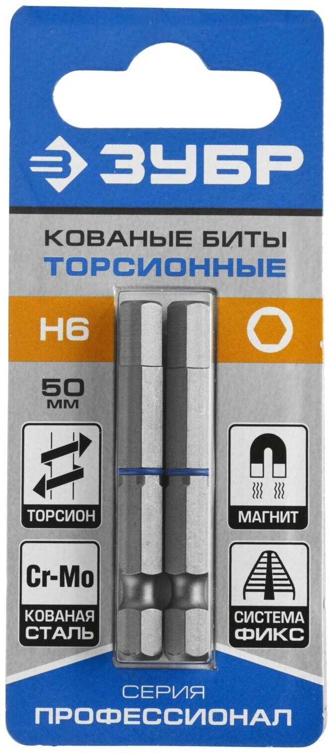 Бита Биты ЗУБР ″Профессионал″ торсионные кованые, обточенные, HEX6, 2шт (26017-6-50-2)