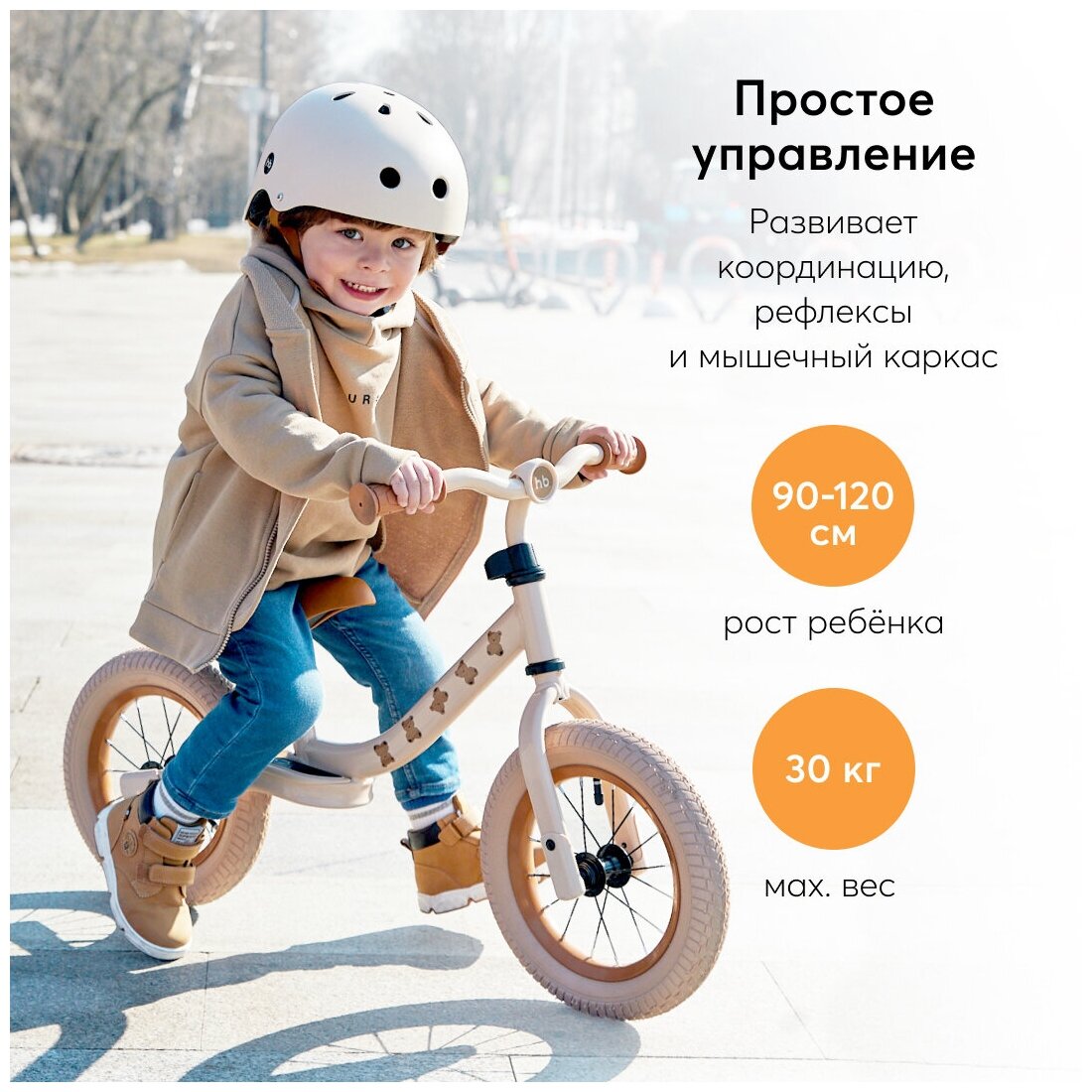 Беговел детский Happy Baby FRANKY, от 2 лет, рост 90-120, с наклейками, бежевый