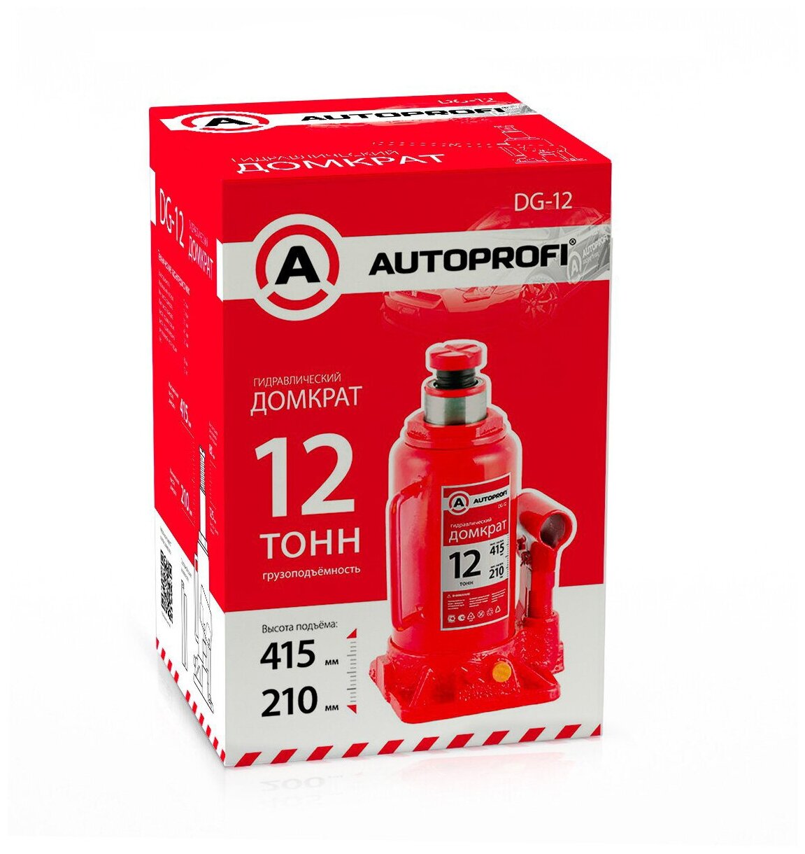 Домкрат Бутылочный Autoprofi, Гидравлический, 12 Тонн., Защита От Перегруза, Высота Подъёма 210 - 415 Мм. AUTOPROFI арт. DG-12