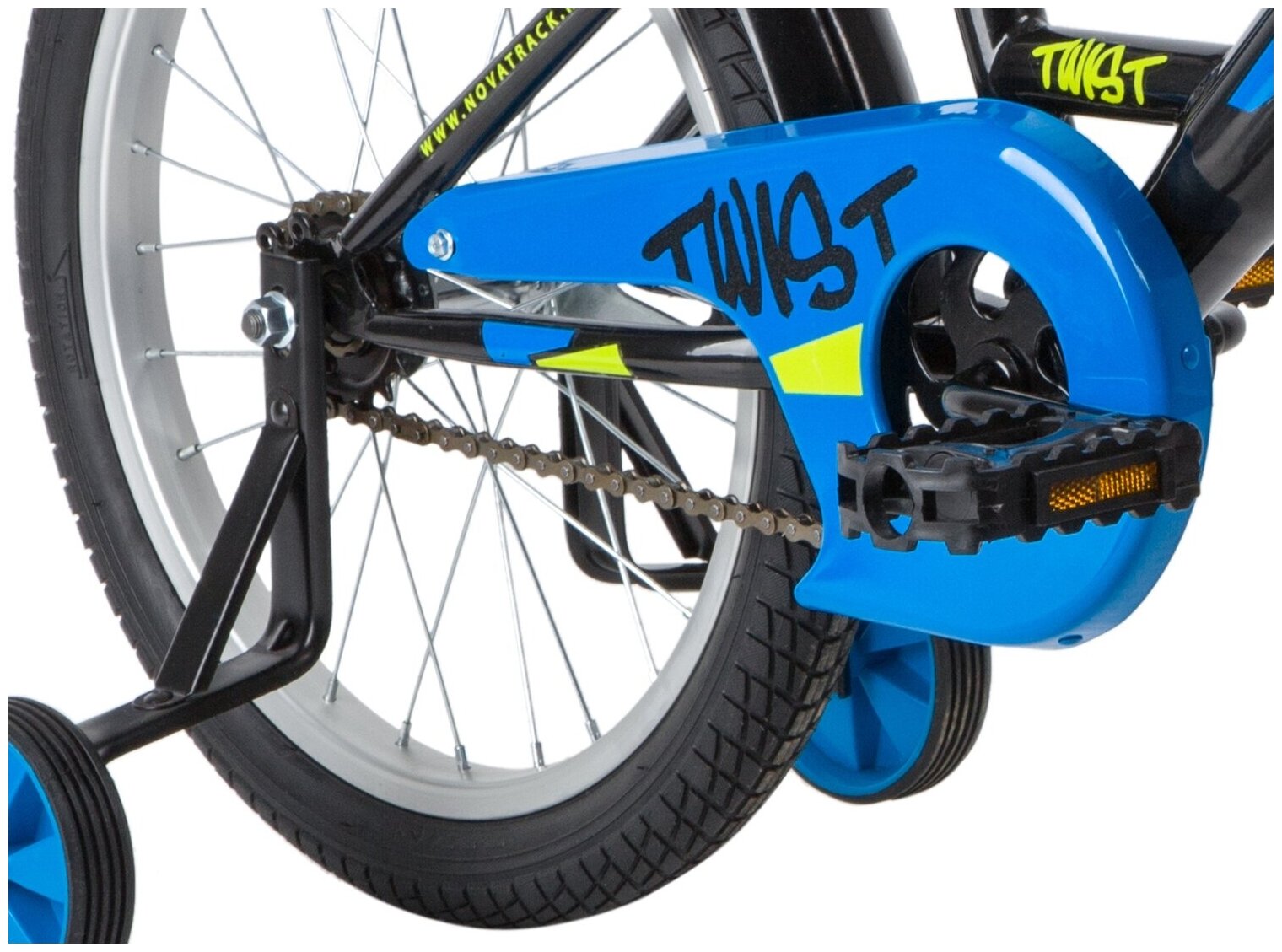 Лучшие цены. Велосипед NOVATRACK 18" TWIST черный, тормоз нож, крылья корот, защита А-тип Novatrack Twist 18 обратите внимание на этот крутой детский велосипед! Он создан специально для энергичных юных райдеров и оснащен крепкой стальной рамой, которая выдержит ежедневные нагрузки. Велосипед оборудован двумя дополнительными съемными колесами, благодаря которым ребенок будет уверенно держать равновесие развивая скорость. Цепь полностью защищена, что делает катание еще комфортнее. Магазины в вашем городе.