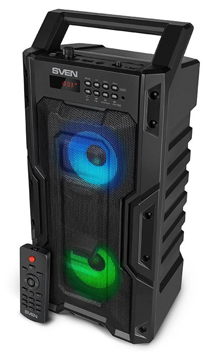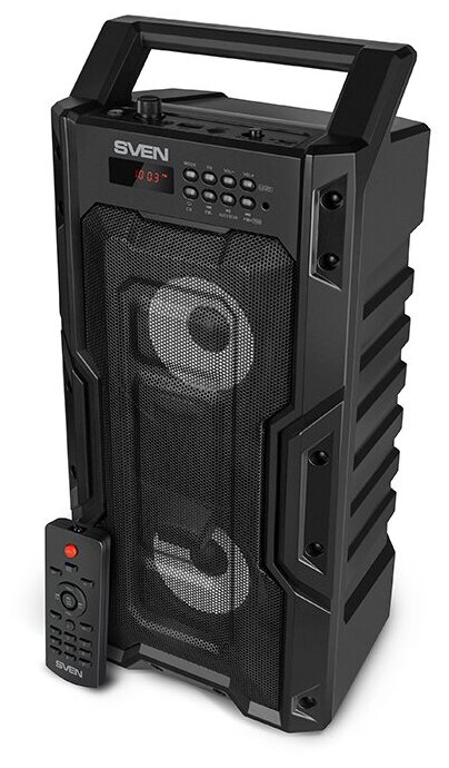 Лучшие цены. Портативная акустика SVEN PS-435 Акустическая система SVEN PS-435 — одна из самых компактных в линейке универсальных портативных устройств, позволяющих устроить вечеринку буквально в любом месте: от дома и дачи до пикника на природе. Вес колонки — всего 2,35 кг, благодаря удобной ручке для переноски ее легко транспортировать. При этом она обеспечивает отличное для компактного решения качество звука, а также оснащена микрофонным входом с регулировкой громкости, который превращает ее в караоке-станцию. Магазины в вашем городе.