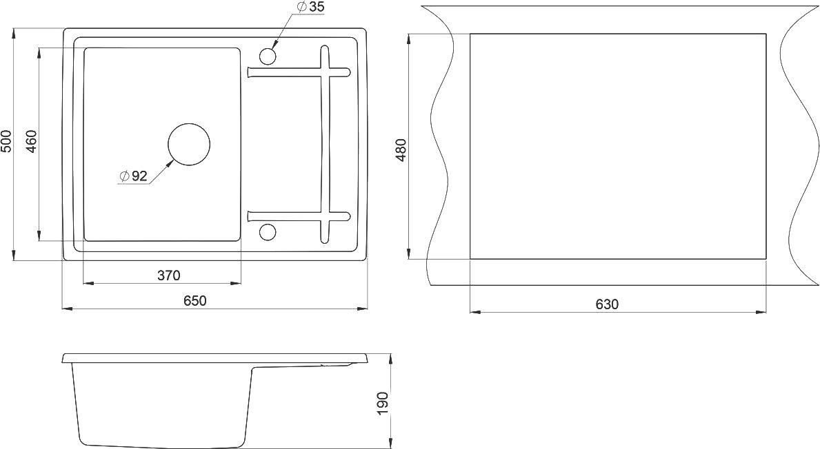 | Размеры врезного отверстия (накладная) | 630x480 мм |