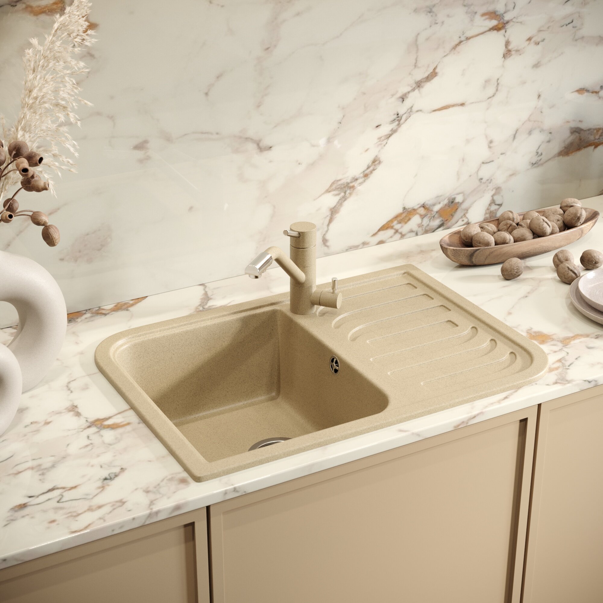 Мойка кухонная Domaci Солерно EMQ-1695.Q бежевая, 34х41,5 см, прямоугольная, с крылом, кварцевая 9 153 ₽ Подробнее