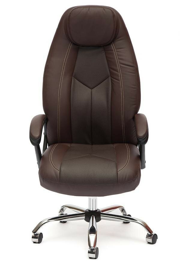 Кресло руководителя TETCHAIR BOSS (хром), кож/зам, коричневый/коричневый перфорированный, 2 TONE/2 TONE /06