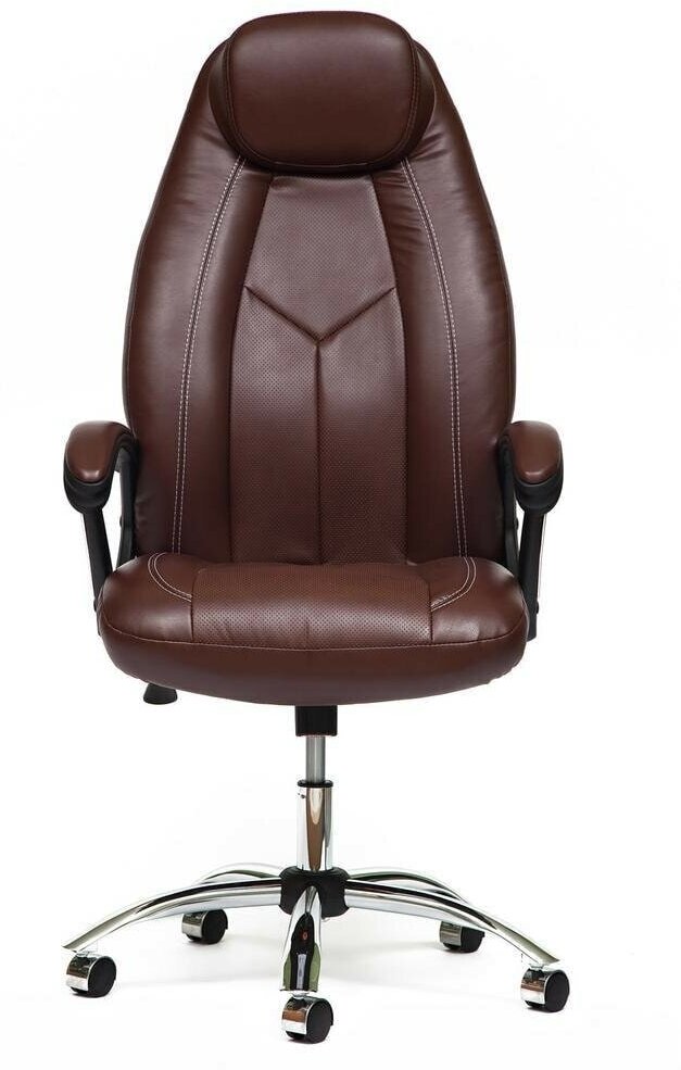 Компьютерное кресло Кресло руководителя TETCHAIR BOSS (хром), кож/зам, коричневый/коричневый перфорированный, 2 TONE/2 TONE /06