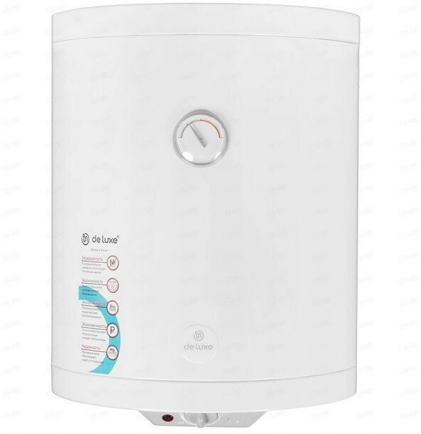 Лучшие цены. Водонагреватель накопительный De Luxe W50V10 Особенности: Система автоматического поддержания температуры Световая индикация включения и нагрева Система полной безопасности SPS security Антикоррозийный магниевый анод Предохранительный клапан Слой теплоизоляции, существенно снижающий тепло- и энергопотери Внутренний бак эмалирован бактерицидной стеклоэмалью Внешняя регулировка температуры воды Характеристики Объем бака: 50 л Форма: Круглая Внутреннее покрытие бака: эмаль Максимальная мощность кВт: 1.5 кВт. Магазины в вашем городе.