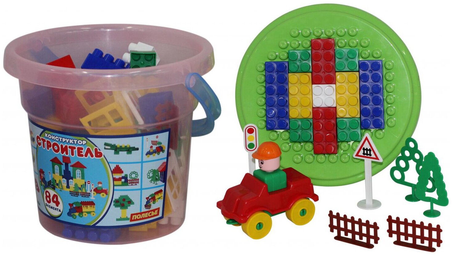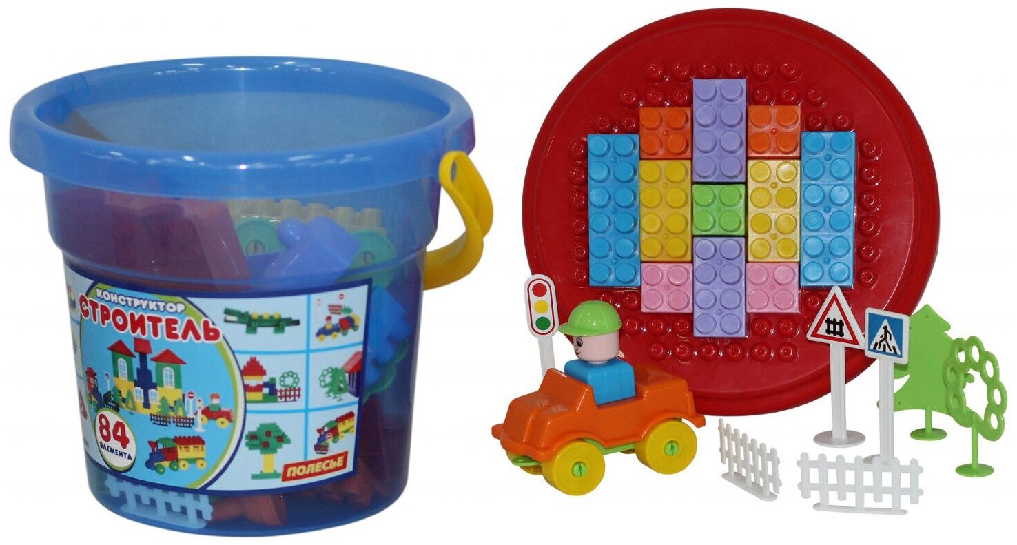 Конструктор Конструктор "Строитель" (84 элем. в ведре "Макси" с крышкой) .