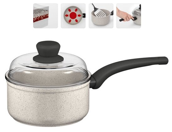 Кастрюля Nadoba Ковш с антипригарным покрытием Marmia (1.5 л), 16 см, с крышкой 728314 Nadoba