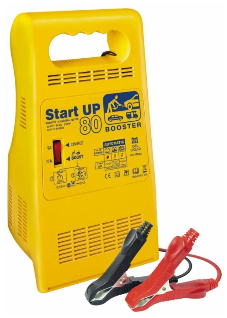 Лучшие цены. Пуско-зарядное устройство GYS Тестер START UP 80 024922 применяется для запуска транспортных средств без риска для бортовой электроники, а также для автоматической зарядки свинцовых аккумуляторов с жидким или гелевым электролитом. Модель поддерживает функцию сверхбыстрой предварительной зарядки в положении Boost, а затем использует мощность запуска 50 А. Передняя панель устройства оснащена тремя лапочками теста, благодаря которым можно визуально отслеживать уровень заряда аккумулятора. Магазины в вашем городе.