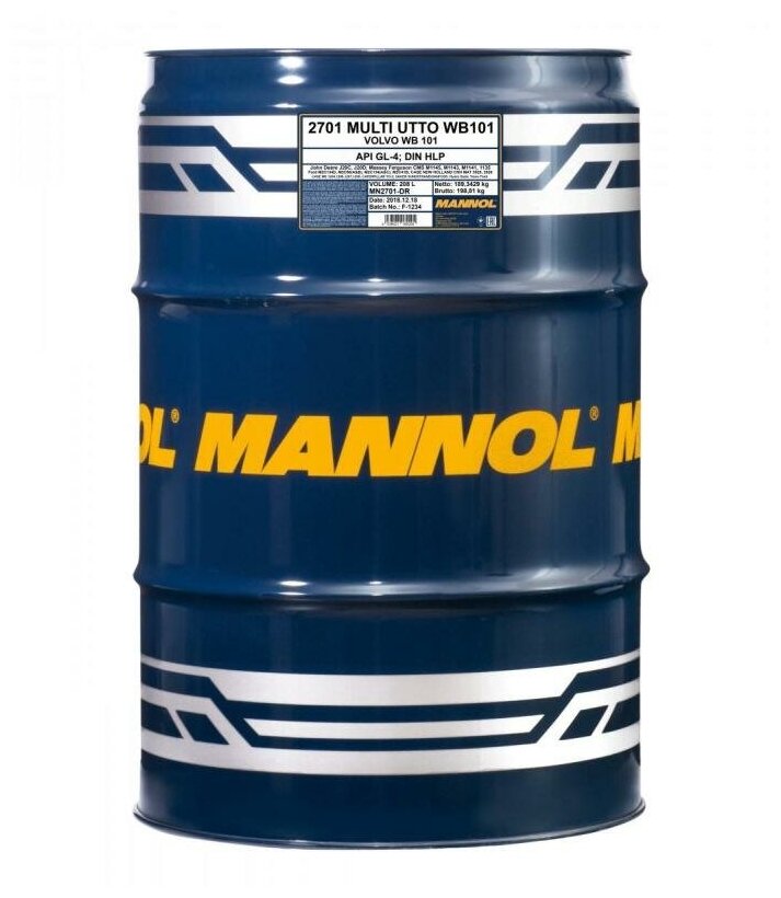 Масло Mannol Транс. Multi Utto Wb 101 (60л.) Мин. Api Gl-4; Din Hlp; Volvo Wb 101; John Deere J20c; J20d; Ford M2c134d; Cater...
