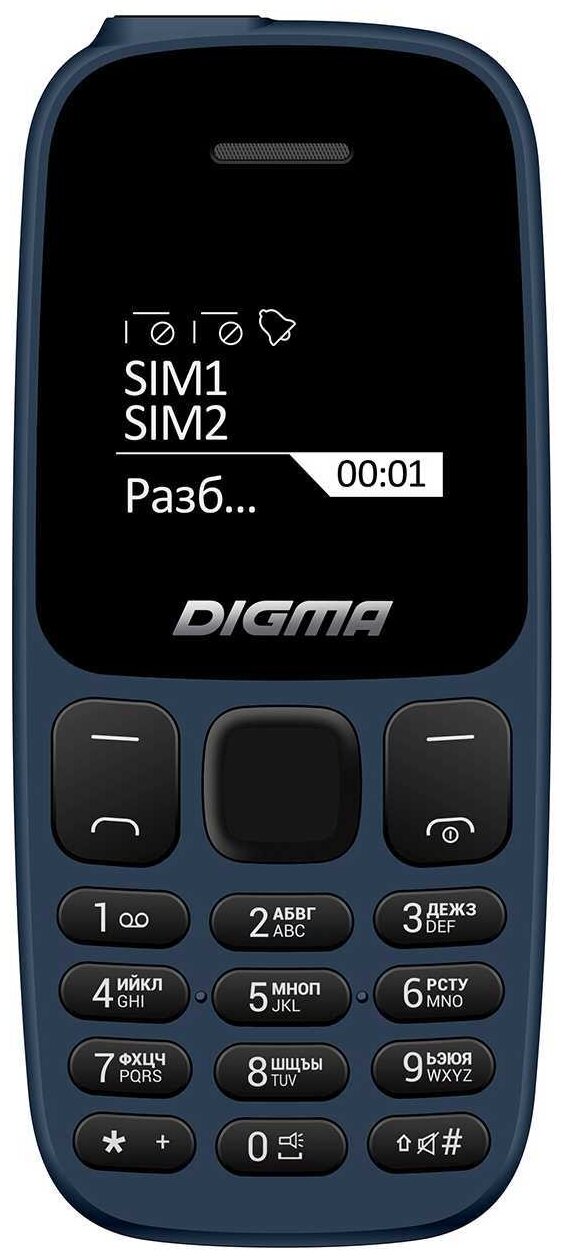 Мобильный телефон Digma A106 Linx 32Mb, синий, моноблок, 2Sim, 1.44"