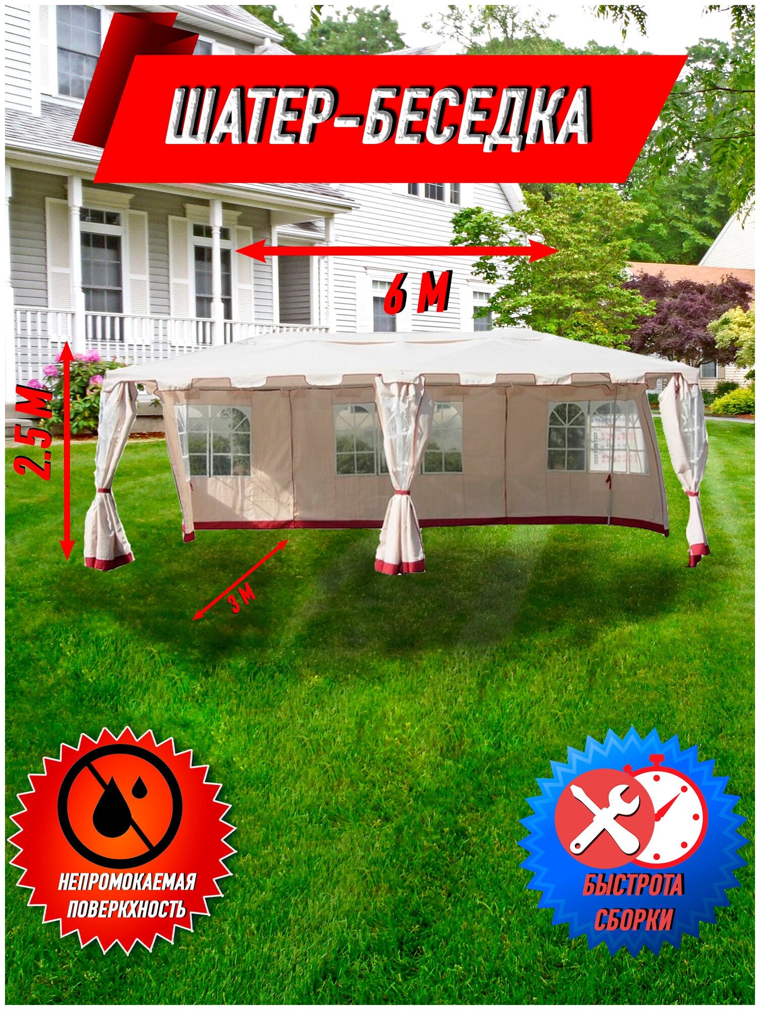 Тент садовый Green Glade дл.3м шир.6м в.2.5м бежевый (1049)