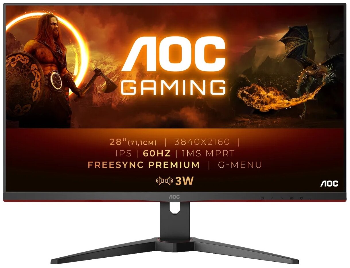 Монитор AOC 28" 3840x2160@60Гц IPS LED 16:9 4ms 2*HDMI DP 80M:1 1000:1 178/178 300cd Tilt Speakers Black/Red