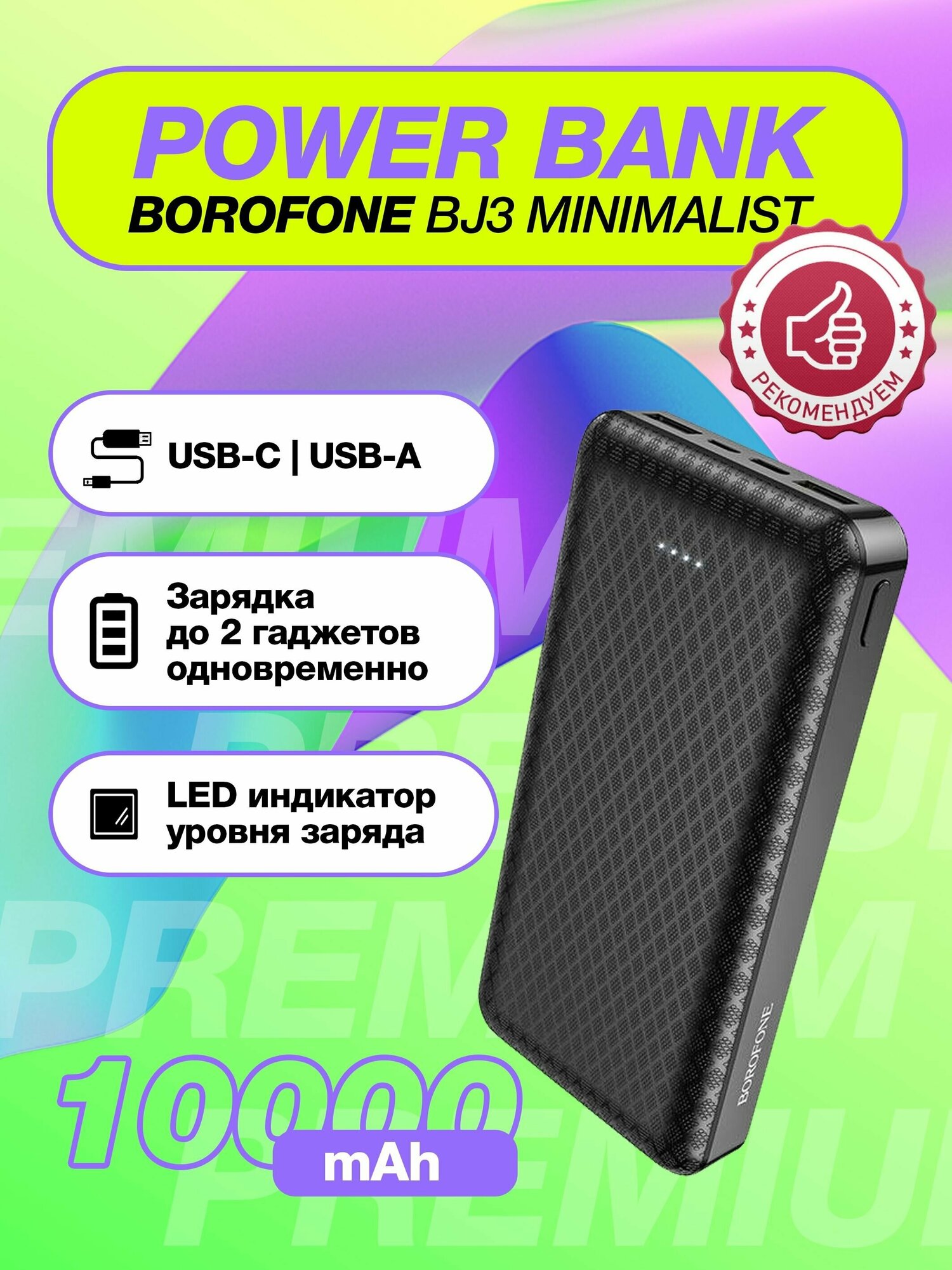 Портативный аккумулятор Borofone BJ3 Minimalist 10000mAh, черный, упаковка: коробка