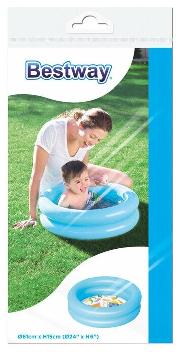 Лучшие цены. Уютный бассейн Bestway 51061 для самых маленьких (до 3-х лет). Нежно-голубой цвет, минимальная безопасная глубина. Бортик состоит из двух колец - малышу будет легко держаться за них, и в то же время они надежно удерживают его внутри бассейна и уберегают от опасностей. Магазины в вашем городе.