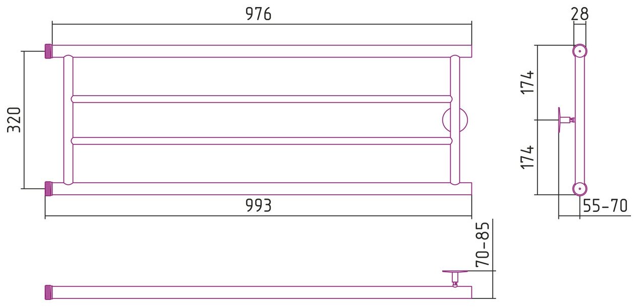 | Подключение | нижнее (вертикальное) (для водяного) |