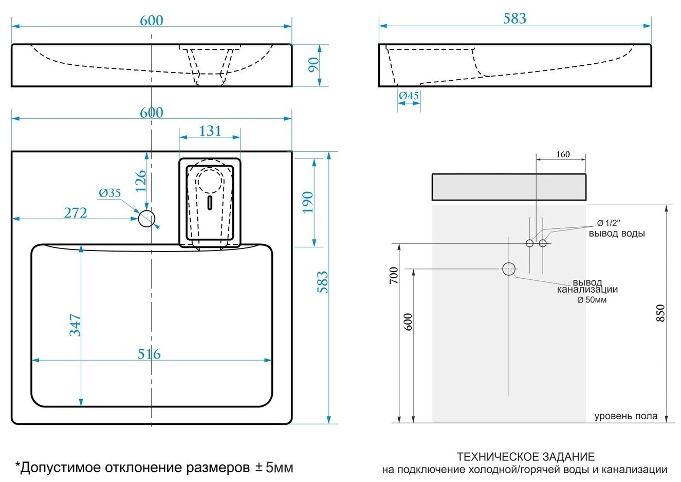 Умывальник Раковина 59.5 см ZETT lab Монако V51