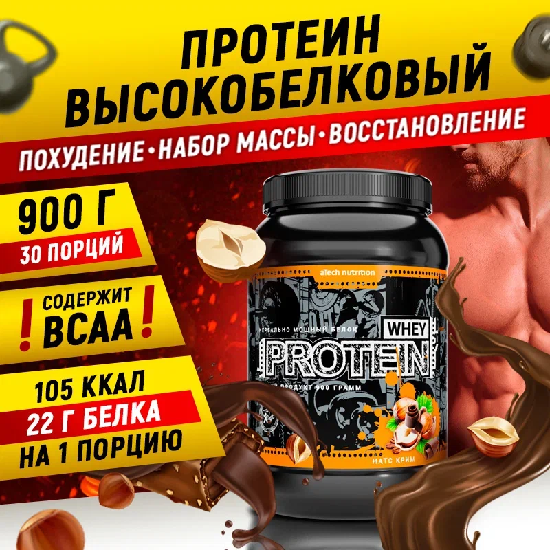 Протеин aTech Nutrition Whey Protein 100%, 900 гр., натс крим