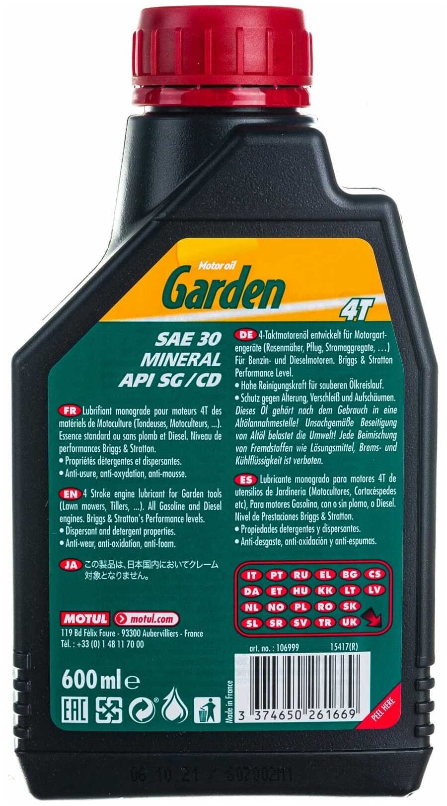 Масло Моторное Motul Garden 4Т Sae30 Минеральное 0.6 Л 106999 MOTUL арт. 106999