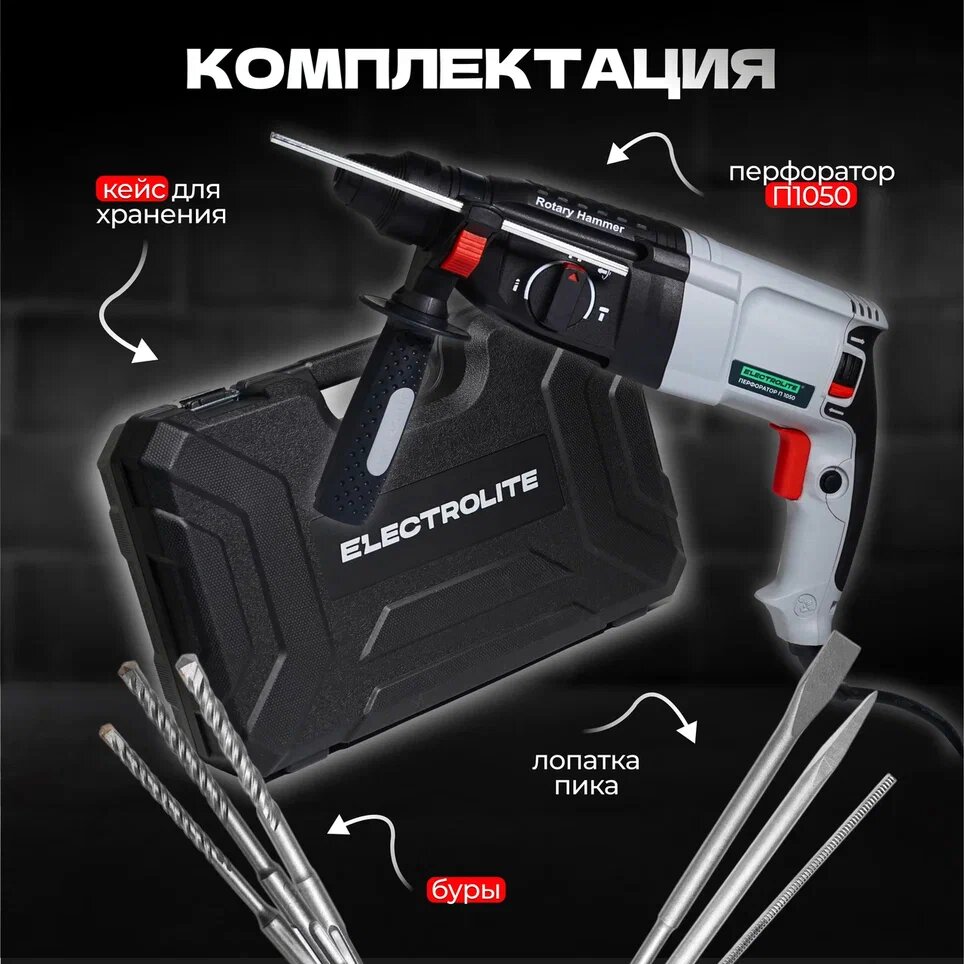 Перфораторы Перфоратор электрический ELECTROLITE П 1050 ( 1050 Вт, 4 Дж, 3 режима, SDS +, кейс, набор буров )