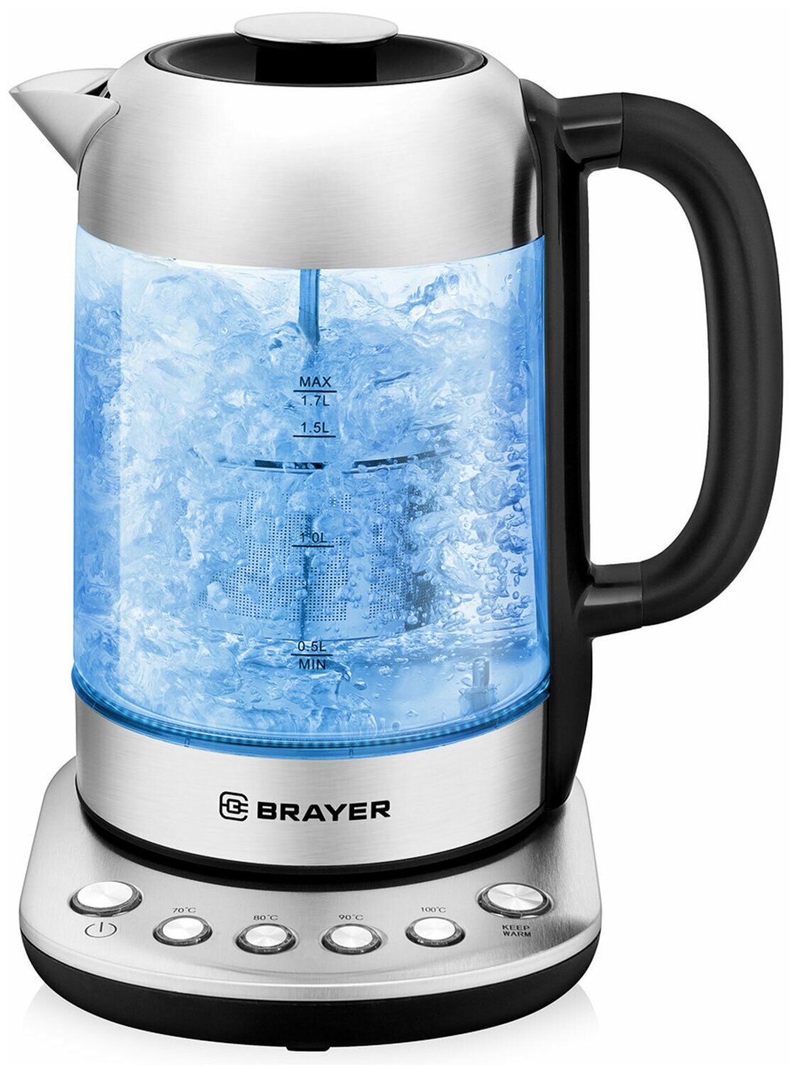 BRAYER Чайник электрический 1,7 л, стеклянный с выбором температуры BR1028