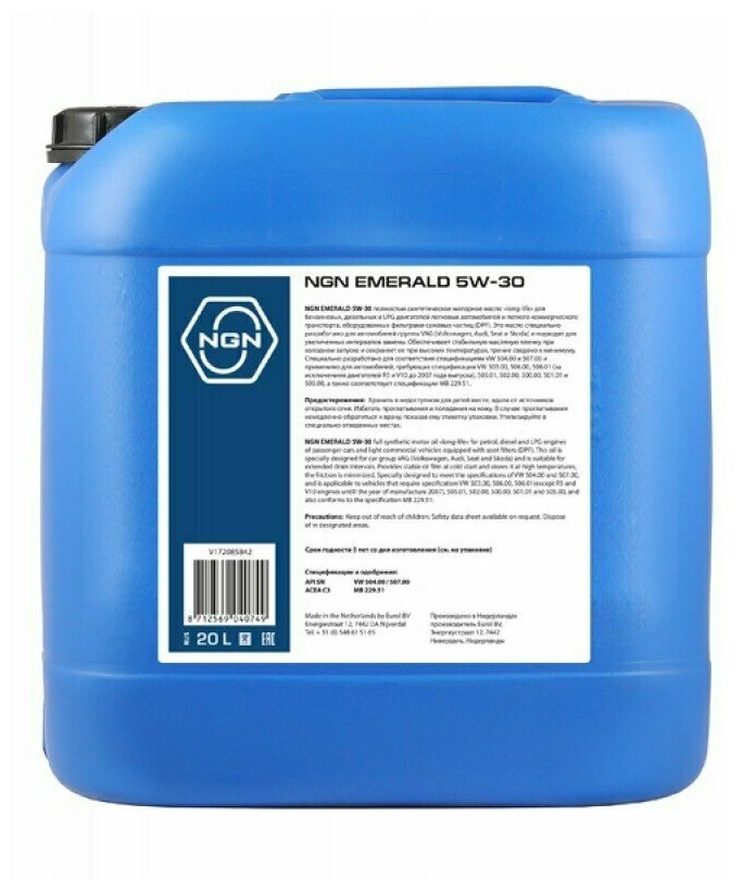 Лучшие цены. NGN EMERALD 5W30 полностью синтетическое моторное масло для бензиновых, дизельных и LPG двигателей легковых автомобилей и легкого коммерческого транспорта, оборудованных фильтрами сажевых частиц (DPF). Это масло специально разработано для автомобилей группы VAG (Volkswagen, Audi, Seat и Skoda) и подходит для увеличенных интервалов замены. NGN EMERALD 5W30 обеспечивает стабильную масляную пленку при холодном запуске и сохраняет ее при высоких температурах, трение сведено к минимуму. Магазины в вашем городе.