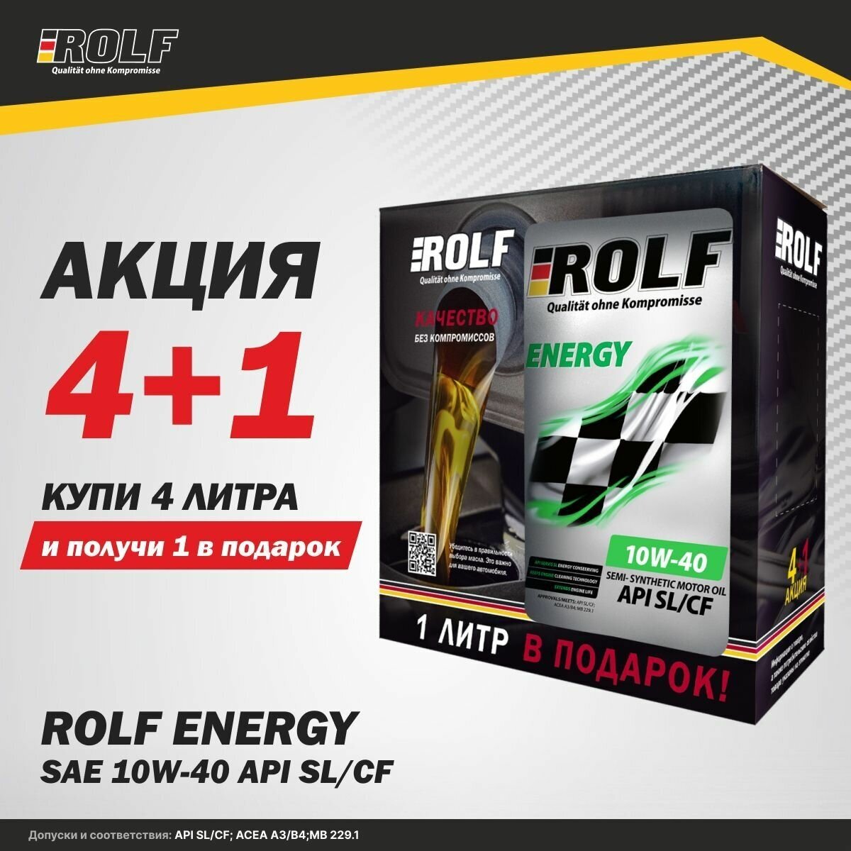 Моторные масла !Акция! 1 Л В подарок Моторное масло ROLF ENERGY SAE 10W-40, API SL/CF Полусинтетическое 5 л