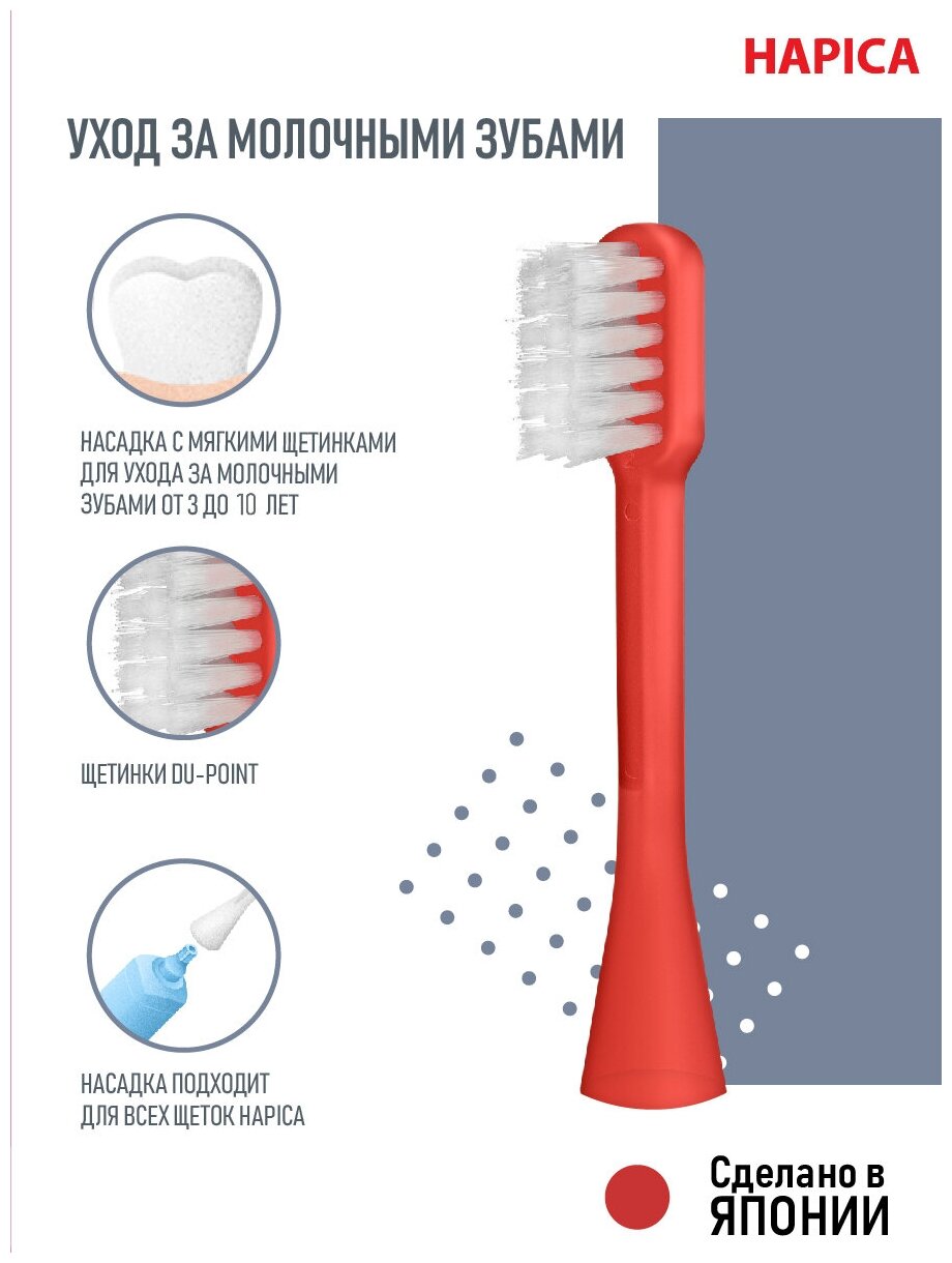 Лучшие цены. Электрическая зубная щетка Hapica Панда DBK-5RWG разработана по запатентованной уникальной технологии специально для детей от 3 до 10 лет. Щетка работает от одной батарейки типа АА, что делает ее одной из наиболее доступных по цене, но не уступающих по качеству зубных щеток. На корпусе изображены симпатичные панды, которые точно понравятся маленькому ребенку. Для электрической зубной щетки Hapica Панда DBK-5RWG подходят насадки Компанией-производителем было проведено исследование, в ходе которого было. Магазины в вашем городе.