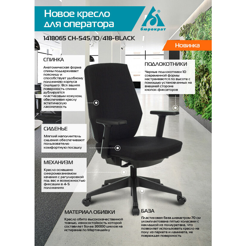 Компьютерное кресло Компьютерное кресло Бюрократ CH-545/1D/418 Black 1418065
